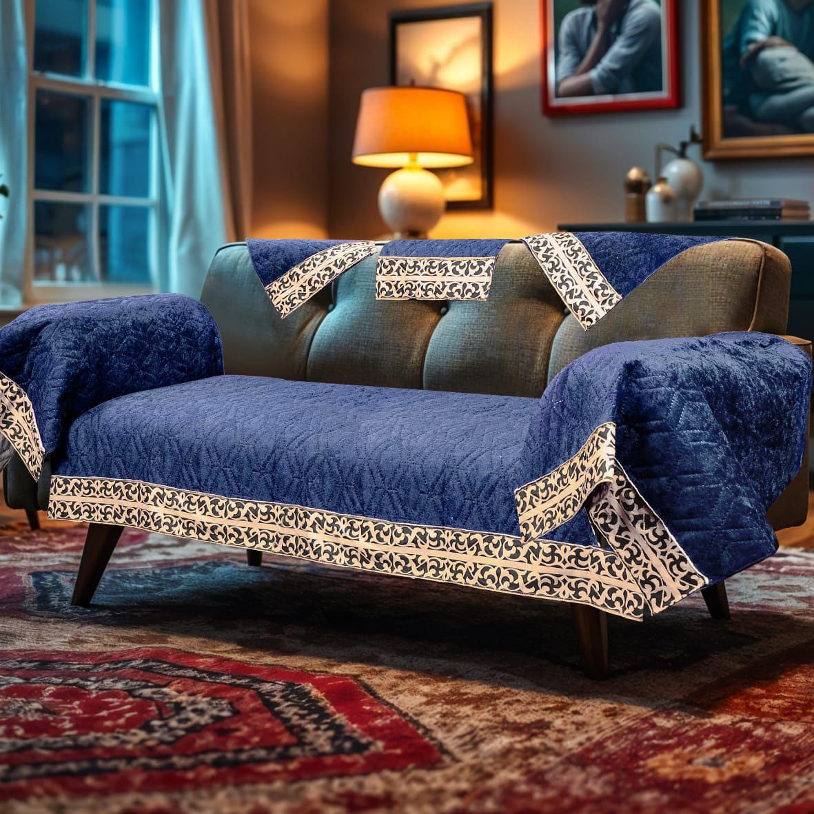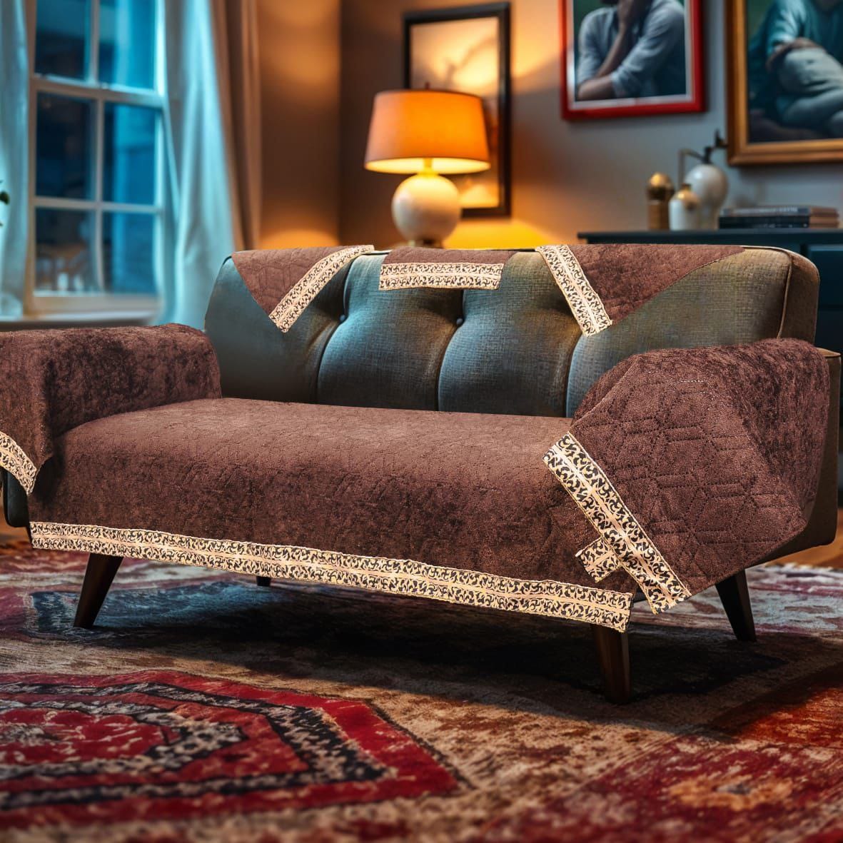 مفرش انترية(كابوتنيه بكنار ذهبي)